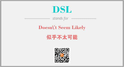 以上为Doesn\'t Seem Likely英文缩略词DSL的中文解释,以及该英文缩写在英语的流行度、分类和应用领域方面的信息。