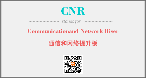 英文缩略词“CNR”经常作为“Communicationand Network Riser”的英文缩写来使用,中文表示:“通信和网络提升板”。本文将详细介绍英文缩写词CNR所代表英文单词,其对应的中文拼音、详细解释以及在英语中的流行度。此外,还有关于缩略词CNR的分类、应用领域及相关应用示例等。