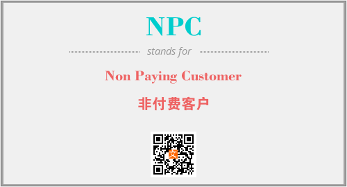 以上为Non Paying Customer英文缩略词NPC的中文解释,以及该英文缩写在英语的流行度、分类和应用领域方面的信息。