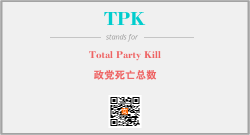 上述内容是“Total Party Kill”作为“TPK”的缩写,解释为“政党死亡总数”时的信息,以及英文缩略词TPK所代表的英文单词,其对应的中文拼音、详细解释以及在英文中的流行度和相关分类、应用领域及应用示例等。