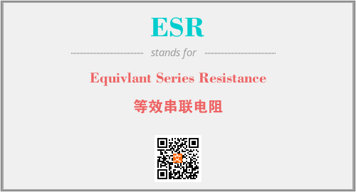 上述内容是“Equivlant Series Resistance”作为“ESR”的缩写,解释为“等效串联电阻”时的信息,以及英文缩略词ESR所代表的英文单词,其对应的中文拼音、详细解释以及在英文中的流行度和相关分类、应用领域及应用示例等。