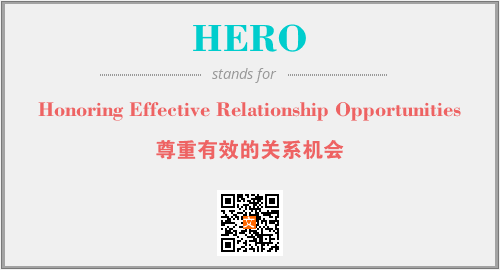 上述内容是“Honoring Effective Relationship Opportunities”作为“HERO”的缩写,解释为“尊重有效的关系机会”时的信息,以及英文缩略词HERO所代表的英文单词,其对应的中文拼音、详细解释以及在英文中的流行度和相关分类、应用领域及应用示例等。