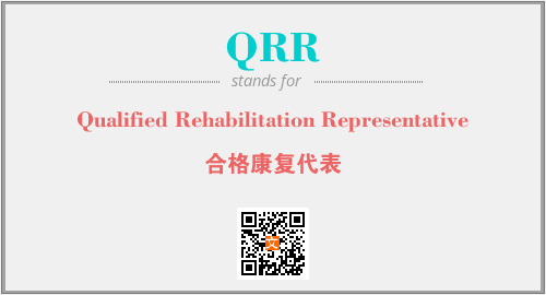 上述内容是“Qualified Rehabilitation Representative”作为“QRR”的缩写,解释为“合格康复代表”时的信息,以及英文缩略词QRR所代表的英文单词,其对应的中文拼音、详细解释以及在英文中的流行度和相关分类、应用领域及应用示例等。