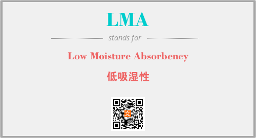 上述内容是“Low Moisture Absorbency”作为“LMA”的缩写,解释为“低吸湿性”时的信息,以及英文缩略词LMA所代表的英文单词,其对应的中文拼音、详细解释以及在英文中的流行度和相关分类、应用领域及应用示例等。