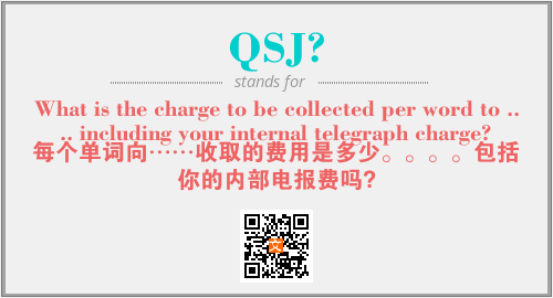 上述内容是“What is the charge to be collected per word to .... including your internal telegraph charge?”作为“QSJ?”的缩写,解释为“每个单词向……收取的费用是多少。。。。包括你的内部电报费吗?”时的信息,以及英文缩略词QSJ?所代表的英文单词,其对应的中文拼音、详细解释以及在英文中的流行度和相关分类、应用领域及应用示例等。