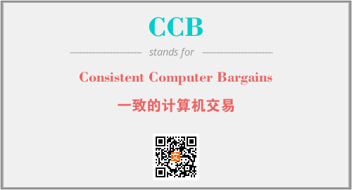 上述内容是“Consistent Computer Bargains”作为“CCB”的缩写,解释为“一致的计算机交易”时的信息,以及英文缩略词CCB所代表的英文单词,其对应的中文拼音、详细解释以及在英文中的流行度和相关分类、应用领域及应用示例等。