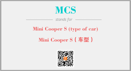 上述内容是“Mini Cooper S (type of car)”作为“MCS”的缩写,解释为“Mini Cooper S(车型)”时的信息,以及英文缩略词MCS所代表的英文单词,其对应的中文拼音、详细解释以及在英文中的流行度和相关分类、应用领域及应用示例等。