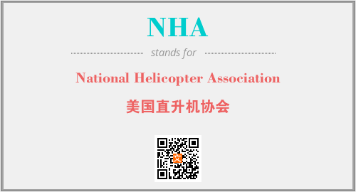 英文缩略词“NHA”经常作为“National Helicopter Association”的英文缩写来使用,中文表示:“美国直升机协会”。本文将详细介绍英文缩写词NHA所代表英文单词,其对应的中文拼音、详细解释以及在英语中的流行度。此外,还有关于缩略词NHA的分类、应用领域及相关应用示例等。