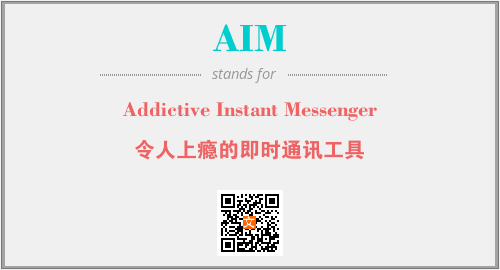 英文缩略词“AIM”经常作为“Addictive Instant Messenger”的英文缩写来使用,中文表示:“令人上瘾的即时通讯工具”。本文将详细介绍英文缩写词AIM所代表英文单词,其对应的中文拼音、详细解释以及在英语中的流行度。此外,还有关于缩略词AIM的分类、应用领域及相关应用示例等。