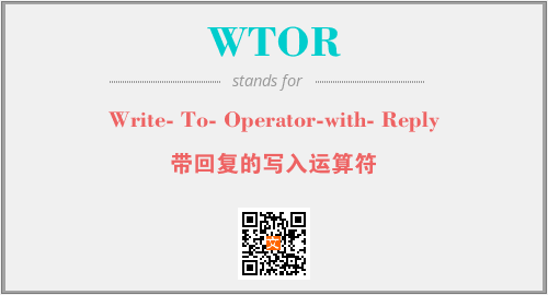 上述内容是“Write- To- Operator-with- Reply”作为“WTOR”的缩写,解释为“带回复的写入运算符”时的信息,以及英文缩略词WTOR所代表的英文单词,其对应的中文拼音、详细解释以及在英文中的流行度和相关分类、应用领域及应用示例等。