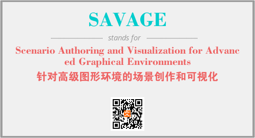 上述内容是“Scenario Authoring and Visualization for Advanced Graphical Environments”作为“SAVAGE”的缩写,解释为“针对高级图形环境的场景创作和可视化”时的信息,以及英文缩略词SAVAGE所代表的英文单词,其对应的中文拼音、详细解释以及在英文中的流行度和相关分类、应用领域及应用示例等。