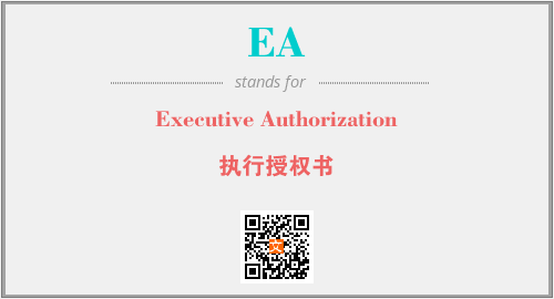 英文缩略词“EA”经常作为“Executive Authorization”的英文缩写来使用,中文表示:“执行授权书”。本文将详细介绍英文缩写词EA所代表英文单词,其对应的中文拼音、详细解释以及在英语中的流行度。此外,还有关于缩略词EA的分类、应用领域及相关应用示例等。