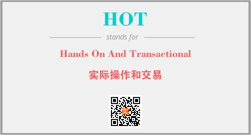 英文缩略词“HOT”经常作为“Hands On And Transactional”的英文缩写来使用,中文表示:“实际操作和交易”。本文将详细介绍英文缩写词HOT所代表英文单词,其对应的中文拼音、详细解释以及在英语中的流行度。此外,还有关于缩略词HOT的分类、应用领域及相关应用示例等。