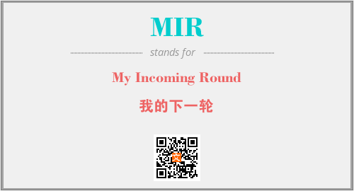 以上为My Incoming Round英文缩略词MIR的中文解释,以及该英文缩写在英语的流行度、分类和应用领域方面的信息。