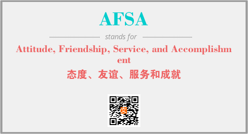 上述内容是“Attitude, Friendship, Service, and Accomplishment”作为“AFSA”的缩写,解释为“态度、友谊、服务和成就”时的信息,以及英文缩略词AFSA所代表的英文单词,其对应的中文拼音、详细解释以及在英文中的流行度和相关分类、应用领域及应用示例等。