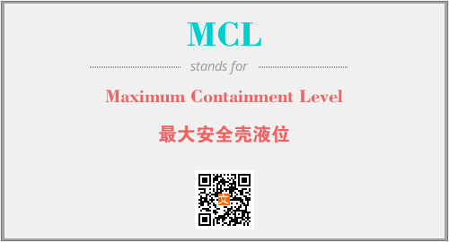上述内容是“Maximum Containment Level”作为“MCL”的缩写,解释为“最大安全壳液位”时的信息,以及英文缩略词MCL所代表的英文单词,其对应的中文拼音、详细解释以及在英文中的流行度和相关分类、应用领域及应用示例等。