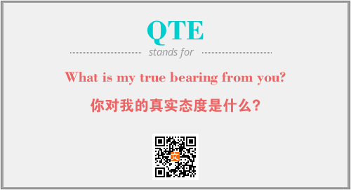 以上为What is my true bearing from you?英文缩略词QTE的中文解释,以及该英文缩写在英语的流行度、分类和应用领域方面的信息。