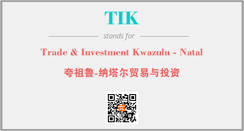 上述内容是“Trade & Investment Kwazulu - Natal”作为“TIK”的缩写,解释为“夸祖鲁-纳塔尔贸易与投资”时的信息,以及英文缩略词TIK所代表的英文单词,其对应的中文拼音、详细解释以及在英文中的流行度和相关分类、应用领域及应用示例等。