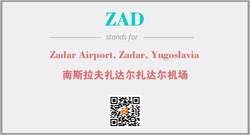 上述内容是“Zadar Airport, Zadar, Yugoslavia”作为“ZAD”的缩写,解释为“南斯拉夫扎达尔扎达尔机场”时的信息,以及英文缩略词ZAD所代表的英文单词,其对应的中文拼音、详细解释以及在英文中的流行度和相关分类、应用领域及应用示例等。