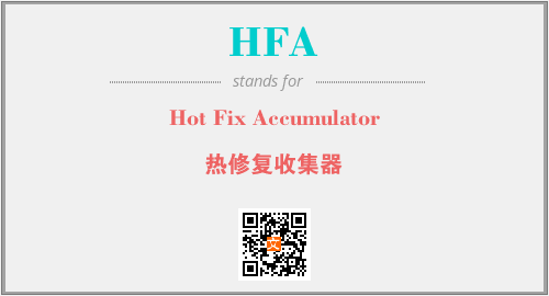 英文缩略词“HFA”经常作为“Hot Fix Accumulator”的英文缩写来使用,中文表示:“热修复收集器”。本文将详细介绍英文缩写词HFA所代表英文单词,其对应的中文拼音、详细解释以及在英语中的流行度。此外,还有关于缩略词HFA的分类、应用领域及相关应用示例等。