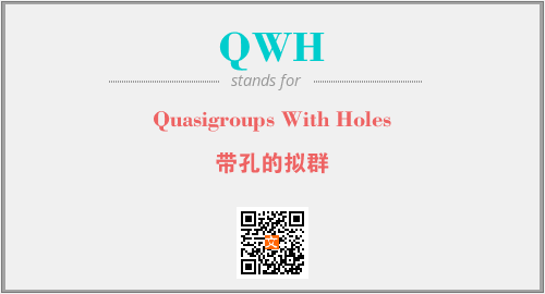 上述内容是“Quasigroups With Holes”作为“QWH”的缩写,解释为“带孔的拟群”时的信息,以及英文缩略词QWH所代表的英文单词,其对应的中文拼音、详细解释以及在英文中的流行度和相关分类、应用领域及应用示例等。