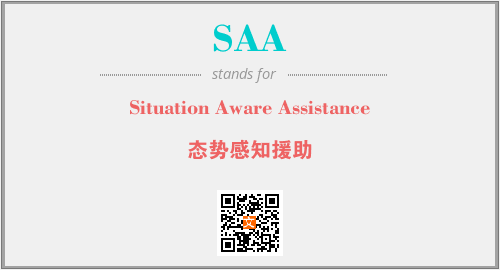 英文缩略词“SAA”经常作为“Situation Aware Assistance”的英文缩写来使用,中文表示:“态势感知援助”。本文将详细介绍英文缩写词SAA所代表英文单词,其对应的中文拼音、详细解释以及在英语中的流行度。此外,还有关于缩略词SAA的分类、应用领域及相关应用示例等。