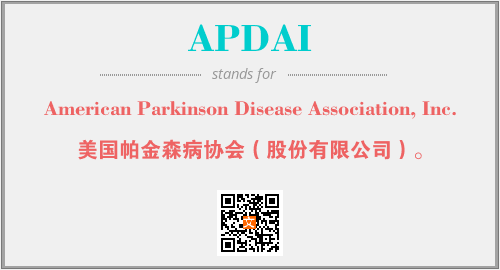 上述内容是“American Parkinson Disease Association, Inc.”作为“APDAI”的缩写,解释为“美国帕金森病协会(股份有限公司)。”时的信息,以及英文缩略词APDAI所代表的英文单词,其对应的中文拼音、详细解释以及在英文中的流行度和相关分类、应用领域及应用示例等。