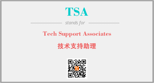 英文缩略词“TSA”经常作为“Tech Support Associates”的英文缩写来使用,中文表示:“技术支持助理”。本文将详细介绍英文缩写词TSA所代表英文单词,其对应的中文拼音、详细解释以及在英语中的流行度。此外,还有关于缩略词TSA的分类、应用领域及相关应用示例等。