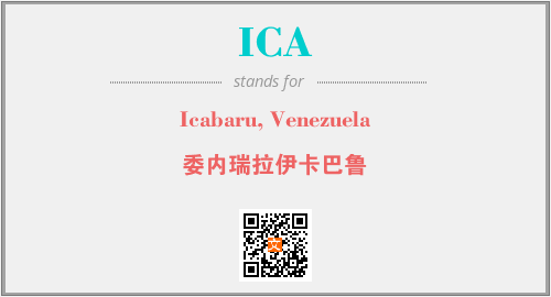 英文缩略词“ICA”经常作为“Icabaru, Venezuela”的英文缩写来使用,中文表示:“委内瑞拉伊卡巴鲁”。本文将详细介绍英文缩写词ICA所代表英文单词,其对应的中文拼音、详细解释以及在英语中的流行度。此外,还有关于缩略词ICA的分类、应用领域及相关应用示例等。