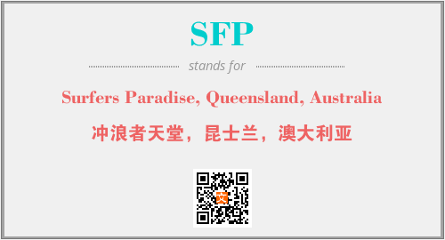 上述内容是“Surfers Paradise, Queensland, Australia”作为“SFP”的缩写,解释为“冲浪者天堂,昆士兰,澳大利亚”时的信息,以及英文缩略词SFP所代表的英文单词,其对应的中文拼音、详细解释以及在英文中的流行度和相关分类、应用领域及应用示例等。