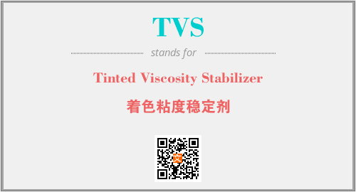 上述内容是“Tinted Viscosity Stabilizer”作为“TVS”的缩写,解释为“着色粘度稳定剂”时的信息,以及英文缩略词TVS所代表的英文单词,其对应的中文拼音、详细解释以及在英文中的流行度和相关分类、应用领域及应用示例等。