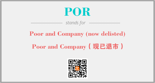 上述内容是“Poor and Company (now delisted)”作为“POR”的缩写,解释为“Poor and Company(现已退市)”时的信息,以及英文缩略词POR所代表的英文单词,其对应的中文拼音、详细解释以及在英文中的流行度和相关分类、应用领域及应用示例等。
