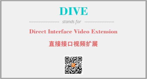 上述内容是“Direct Interface Video Extension”作为“DIVE”的缩写,解释为“直接接口视频扩展”时的信息,以及英文缩略词DIVE所代表的英文单词,其对应的中文拼音、详细解释以及在英文中的流行度和相关分类、应用领域及应用示例等。