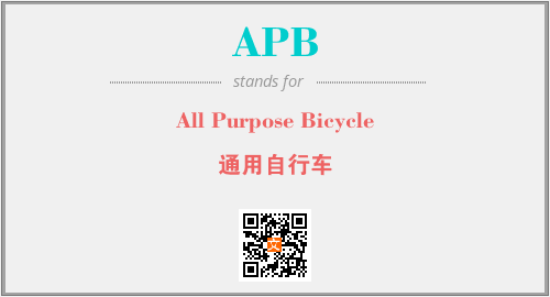 以上为All Purpose Bicycle英文缩略词APB的中文解释,以及该英文缩写在英语的流行度、分类和应用领域方面的信息。