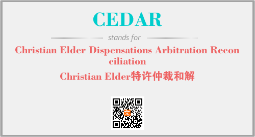 以上为Christian Elder Dispensations Arbitration Reconciliation英文缩略词CEDAR的中文解释,以及该英文缩写在英语的流行度、分类和应用领域方面的信息。