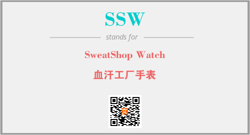 英文缩略词“SSW”经常作为“SweatShop Watch”的英文缩写来使用,中文表示:“血汗工厂手表”。本文将详细介绍英文缩写词SSW所代表英文单词,其对应的中文拼音、详细解释以及在英语中的流行度。此外,还有关于缩略词SSW的分类、应用领域及相关应用示例等。