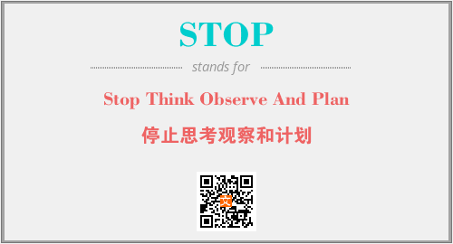 以上为Stop Think Observe And Plan英文缩略词STOP的中文解释,以及该英文缩写在英语的流行度、分类和应用领域方面的信息。