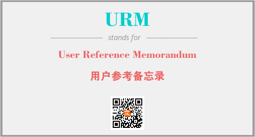 英文缩略词“URM”经常作为“User Reference Memorandum”的英文缩写来使用,中文表示:“用户参考备忘录”。本文将详细介绍英文缩写词URM所代表英文单词,其对应的中文拼音、详细解释以及在英语中的流行度。此外,还有关于缩略词URM的分类、应用领域及相关应用示例等。