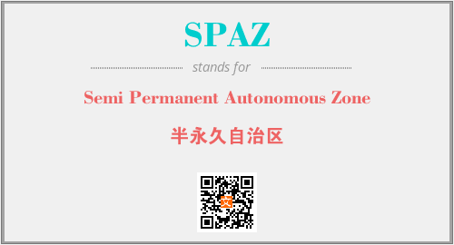 英文缩略词“SPAZ”经常作为“Semi Permanent Autonomous Zone”的英文缩写来使用,中文表示:“半永久自治区”。本文将详细介绍英文缩写词SPAZ所代表英文单词,其对应的中文拼音、详细解释以及在英语中的流行度。此外,还有关于缩略词SPAZ的分类、应用领域及相关应用示例等。
