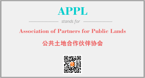 上述内容是“Association of Partners for Public Lands”作为“APPL”的缩写,解释为“公共土地合作伙伴协会”时的信息,以及英文缩略词APPL所代表的英文单词,其对应的中文拼音、详细解释以及在英文中的流行度和相关分类、应用领域及应用示例等。