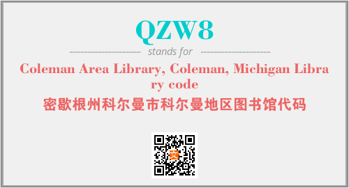 "QZW8 - 密歇根州科尔曼市科尔曼地区图书馆代码 ." [引用日期]. <https://www.suoxie123.com/a/21A5A.html>.