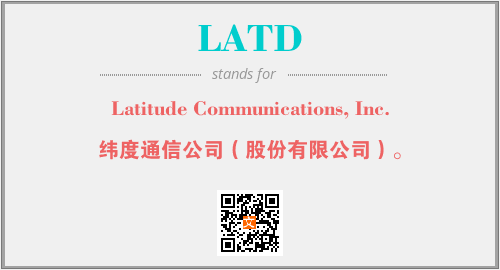 上述内容是“Latitude Communications, Inc.”作为“LATD”的缩写,解释为“纬度通信公司(股份有限公司)。”时的信息,以及英文缩略词LATD所代表的英文单词,其对应的中文拼音、详细解释以及在英文中的流行度和相关分类、应用领域及应用示例等。