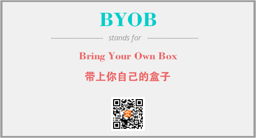 以上为Bring Your Own Box英文缩略词BYOB的中文解释,以及该英文缩写在英语的流行度、分类和应用领域方面的信息。