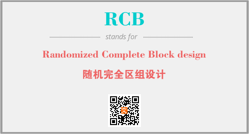 英文缩略词“RCB”经常作为“Randomized Complete Block design”的英文缩写来使用,中文表示:“随机完全区组设计”。本文将详细介绍英文缩写词RCB所代表英文单词,其对应的中文拼音、详细解释以及在英语中的流行度。此外,还有关于缩略词RCB的分类、应用领域及相关应用示例等。