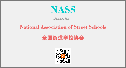 上述内容是“National Association of Street Schools”作为“NASS”的缩写,解释为“全国街道学校协会”时的信息,以及英文缩略词NASS所代表的英文单词,其对应的中文拼音、详细解释以及在英文中的流行度和相关分类、应用领域及应用示例等。