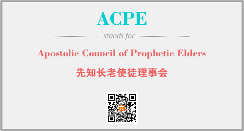 上述内容是“Apostolic Council of Prophetic Elders”作为“ACPE”的缩写,解释为“先知长老使徒理事会”时的信息,以及英文缩略词ACPE所代表的英文单词,其对应的中文拼音、详细解释以及在英文中的流行度和相关分类、应用领域及应用示例等。