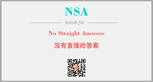 英文缩略词“NSA”经常作为“No Straight Answers”的英文缩写来使用,中文表示:“没有直接的答案”。本文将详细介绍英文缩写词NSA所代表英文单词,其对应的中文拼音、详细解释以及在英语中的流行度。此外,还有关于缩略词NSA的分类、应用领域及相关应用示例等。