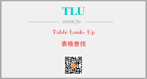 英文缩略词“TLU”经常作为“Table Look- Up”的英文缩写来使用,中文表示:“表格查找”。本文将详细介绍英文缩写词TLU所代表英文单词,其对应的中文拼音、详细解释以及在英语中的流行度。此外,还有关于缩略词TLU的分类、应用领域及相关应用示例等。