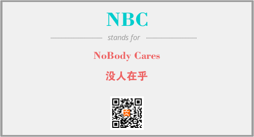 英文缩略词“NBC”经常作为“NoBody Cares”的英文缩写来使用,中文表示:“没人在乎”。本文将详细介绍英文缩写词NBC所代表英文单词,其对应的中文拼音、详细解释以及在英语中的流行度。此外,还有关于缩略词NBC的分类、应用领域及相关应用示例等。