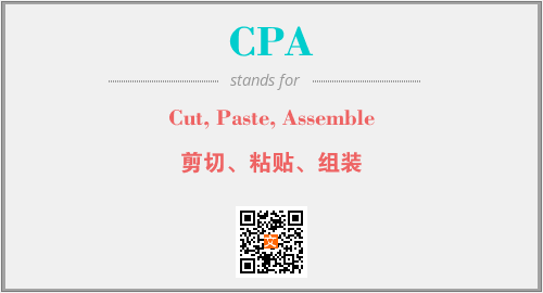 以上为Cut, Paste, Assemble英文缩略词CPA的中文解释,以及该英文缩写在英语的流行度、分类和应用领域方面的信息。